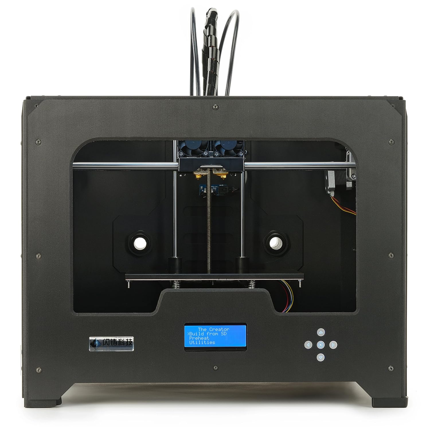 The Flashforge Creator is a reasonably priced Chinese 3D printer which bears close resemblance to the Makerbot Replicator 2. It features a dual extruder and supports dual color/material printing. Both ABS and PLA can be printed at a resolution of 100 microns with a maximum size of 22.5 x 14.5 x 15 cm.